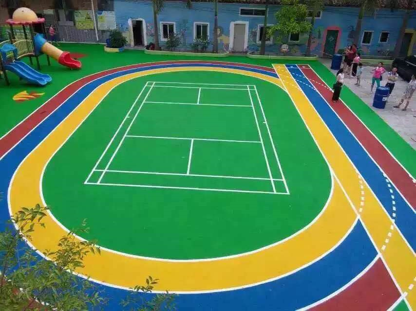 6、理想的综合功能:适用于室内外篮球场,网球场,排球场,羽毛球场,手球场,休闲场地,健身房等多项运动地面。